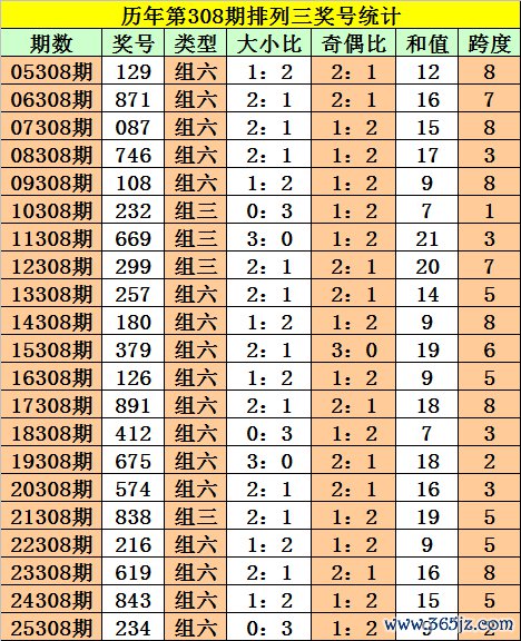 罗列三第2025308期奖号:234,和值9,跨度2,大小比0:3,奇偶比1:2。