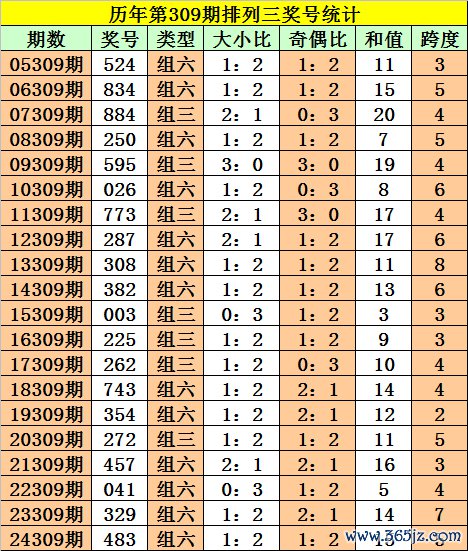 积年第309期奖号中:组三开出7次,组六开出13次。组三、组六走势相等,本期柔柔组三。